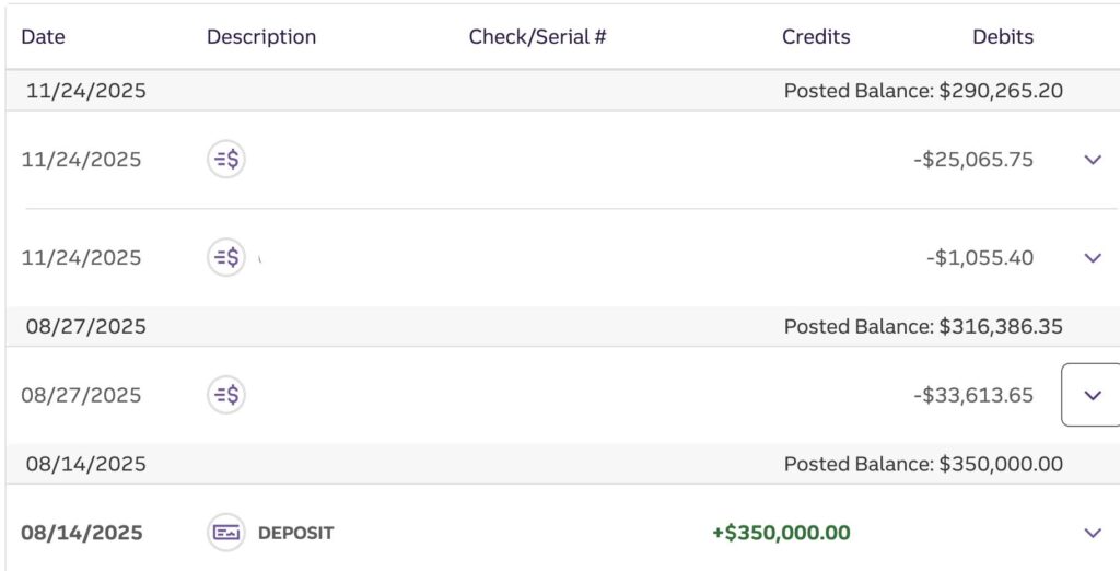 - August 14, 2025 – A $350,000 grant deposit was posted.