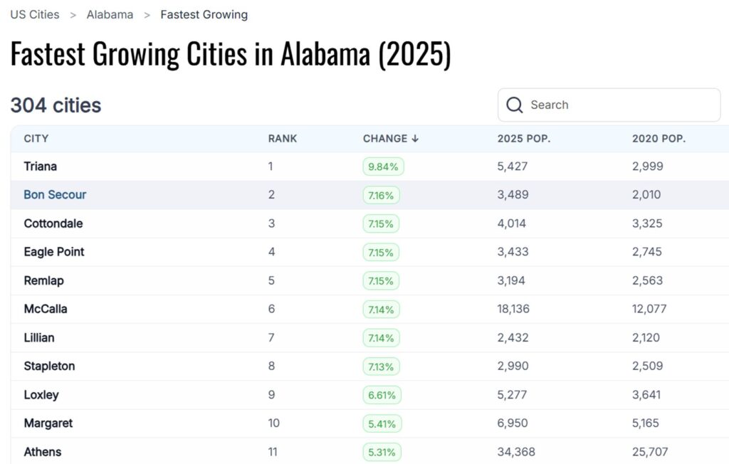 📈 Margaret ranks as the 10th fastest-growing city in Alabama in 2025.